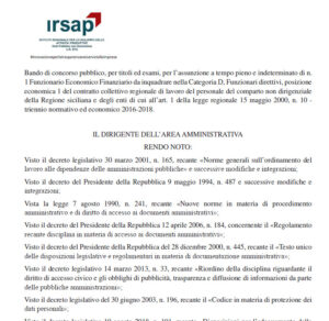 Avviso pubblico per l’individuazione dei componenti delle commissioni esaminatrici dei concorsi pubblici banditi dall’IRSAP per la copertura di n. 1 Funzionario Avvocato da inquadrare nella Categoria D, Funzionari direttivi, posizione economica 1.
