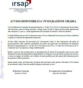 Avviso disponibilità all’estensione oraria da tempo parziale a tempo pieno di tutte le figure professionali interne appartenenti alla categoria C e per n. 3 unità appartenenti alla categoria B