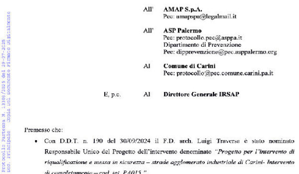 A. I. Carini (PA). Ripubblicato l’avviso di manifestazione di interesse per il completamento delle opere di riqualificazione