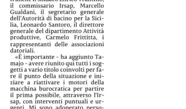 Lavori area industriale di Carini, Tamajo incontra gli imprenditori: “In ritardo per Zes unica ma abbiamo piano B”