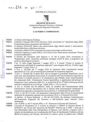 Decreto Assessoriale n 131 del 08/06/2022 – Assessorato Regionale Territorio e Ambiente – Dipartimento Regionale Urbanistica