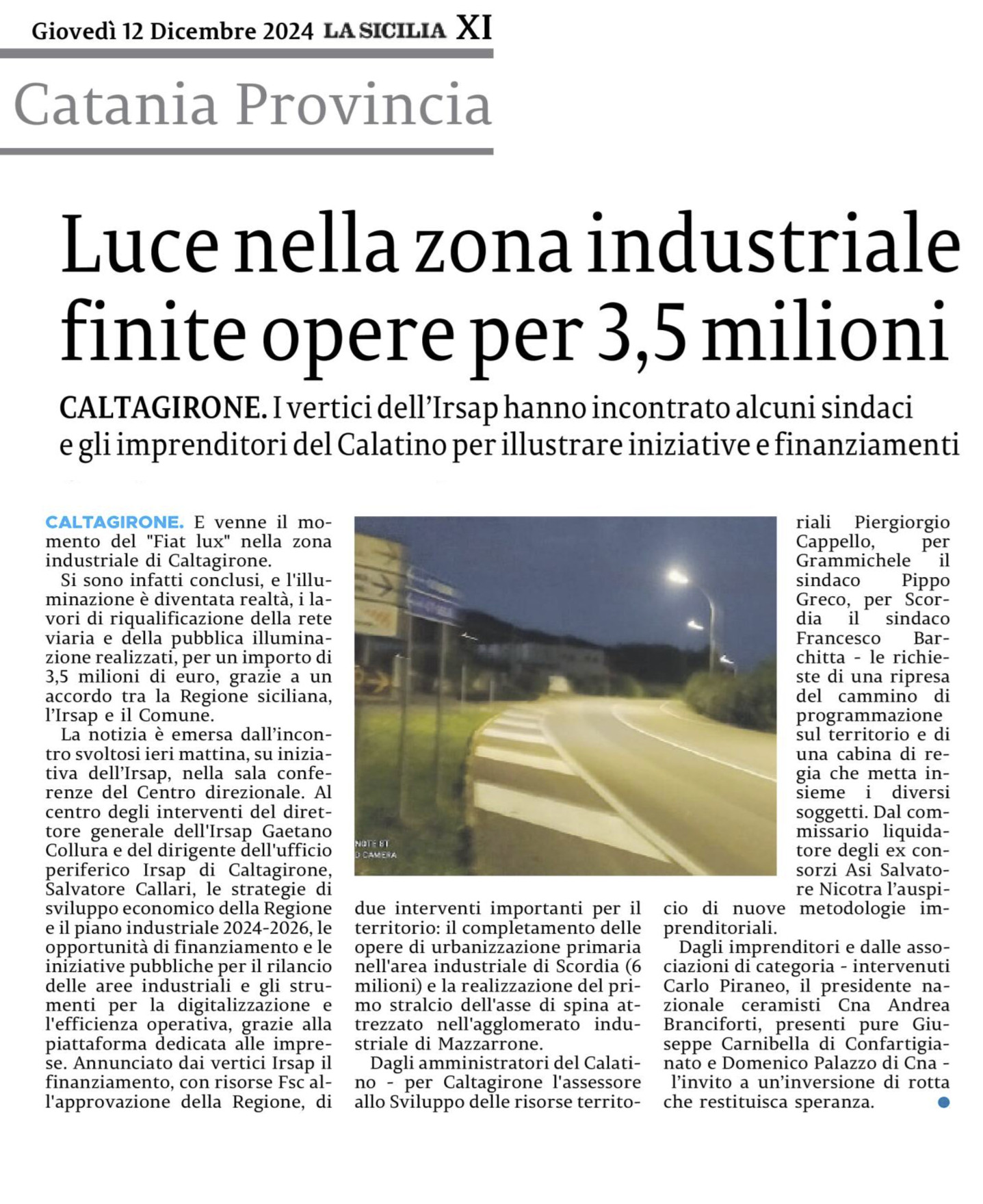 • Luce nella zona industriale di Caltagirone – finite opere per 3,5 milioni