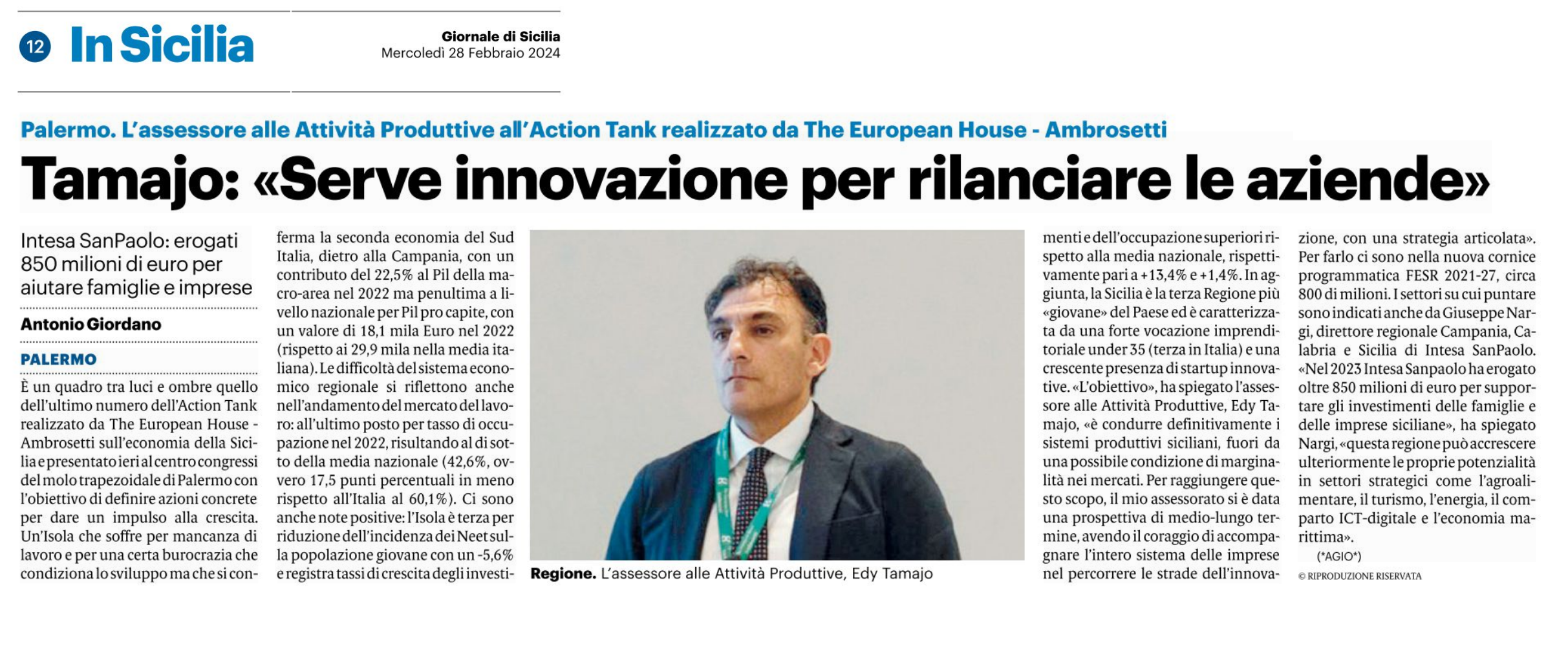 Tamajo:”Serve innovazione per rilanciare le aziende”